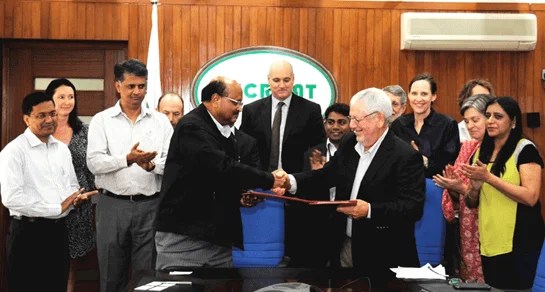 Hyderabad, India (2 December 2014). A new research agreement was signed today between the Horticulture Innovation Australia (HIA) and the International Crops Research Institute for the Semi-Arid-Tropics (ICRISAT) at the institute’s global headquarters in Hyderabad, India. The Memorandum of Understanding (MoU) will allow researchers from ICRISAT and Australian agencies to undertake joint research and development (R&D) in plant genomics for the first time through HIA. The agreement was signed by Mr David Cliffe, HIA Director and Dr William Dar, ICRISAT Director General.