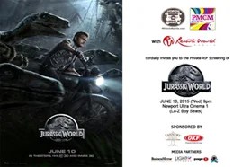 Jurassic World VIP Movie Blocked Screening last June 10, 2015 at the Resorts World Ultra-Cinema 1 was a hit. It was attended by Media Partners, Bloggers, Celebrities and representatives of Resorts World. This movie screening in La-Z boy seats was made possible by WhenInManila.com with PMCM Events Management and Resorts World.
