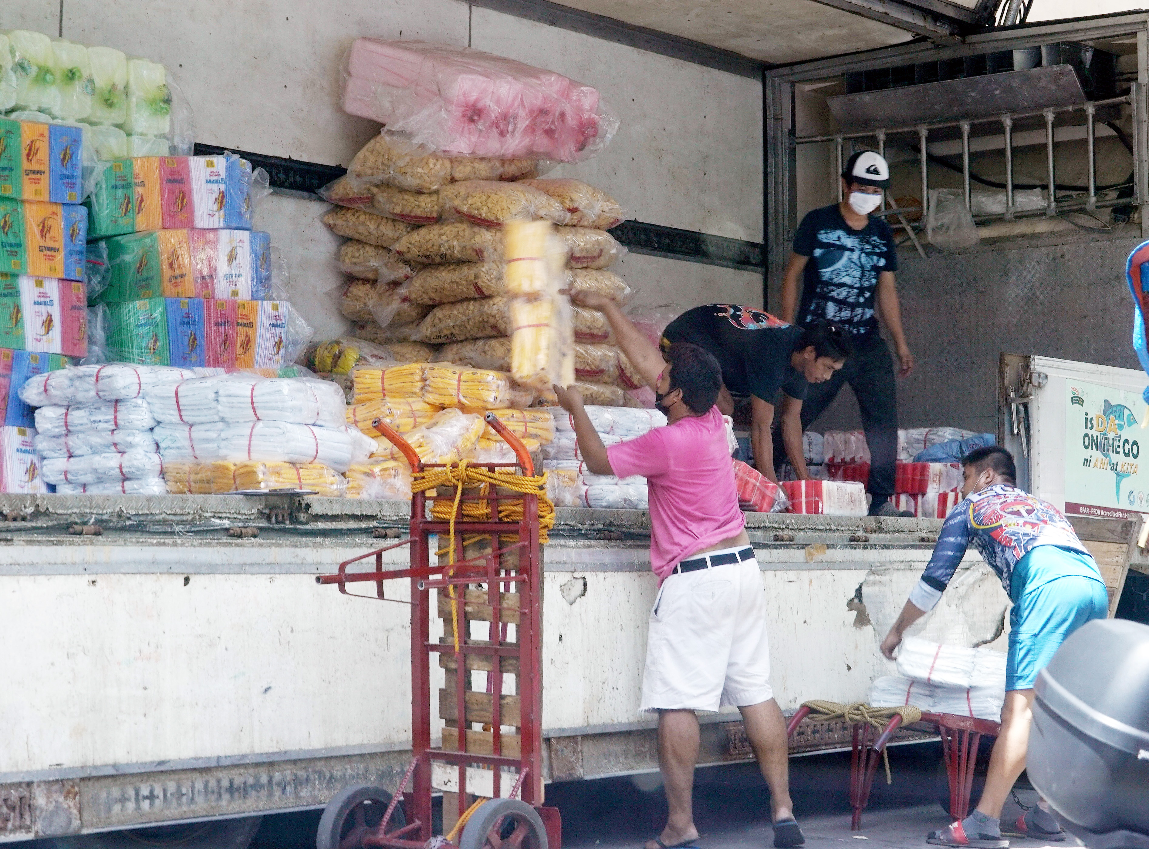 BACK TO BUSINESS. Delivery workers load merchandise into a truck on San Fernando Street, Binondo, Manila to be delivered to various retail and wholesale stores in the area on Friday (Apr. 1, 2022). Several business establishments have resumed up to 100 percent operation for their fully vaccinated employees as the country’s economy continues to pick up from the impact of the coronavirus pandemic. (Photo by Ben Briones)